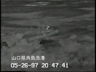 ![]() A video image of a person walking along the coastline at night. |